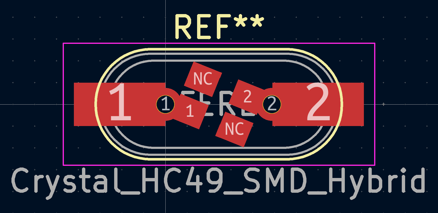 This combines the two common "can" style footprints with a common space-saving SMD footprint. Be careful that the extra pads don't contact the can. You may need to mask them off with something like kapton tape.