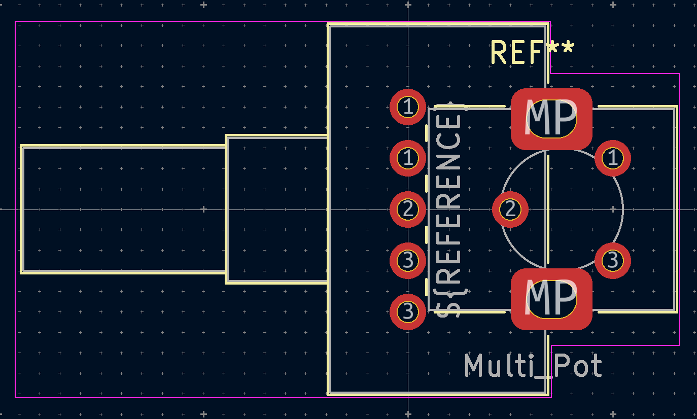 The Multi-Pot combines standard footprints for 9mm vertical, 17mm horizontal, and 6mm trim pots into a single footprint.